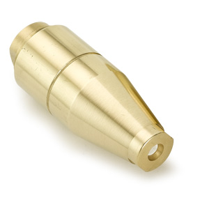 Rotating nozzle is designed with a 0 degree straight stream that rotates at a 20 degree angle for high impact cleaning using less water. This design includes a heavy-duty ceramic nozzle and seat for greater resistance to wear. Mount to any threaded lance and use in any position. To ensure smooth rotation, operate at minimum of 500psi. Nozzle size 3.5